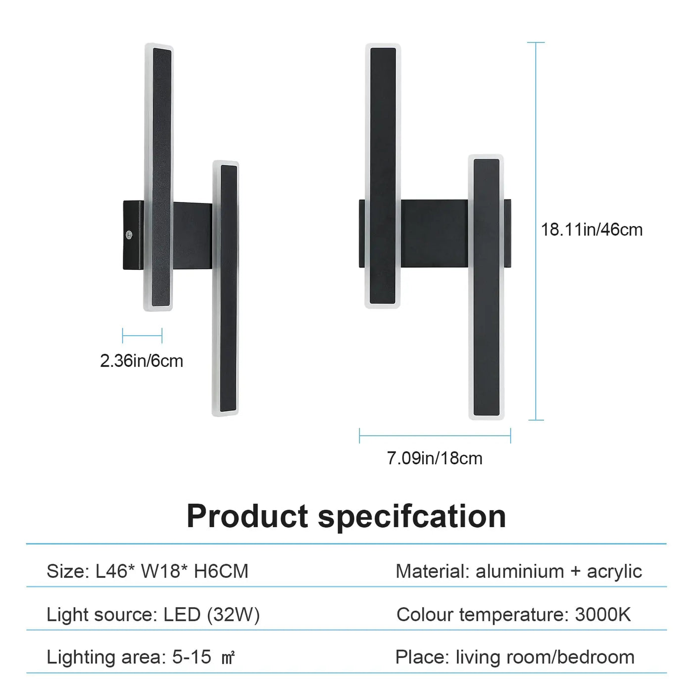 Radientia Modern LED Wall Light – 32W, 6500K Cool White - Black