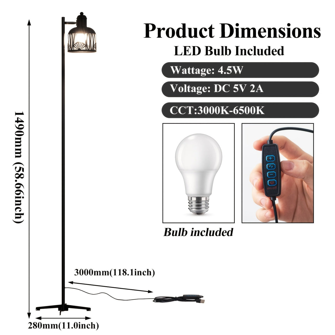 Standing at 58 inches, this lamp is tall enough to light a reading nook, sofa corner, or study desk. The painted iron finish enhances its industrial look, while the dimmable LED technology ensures eye comfort and energy savings.