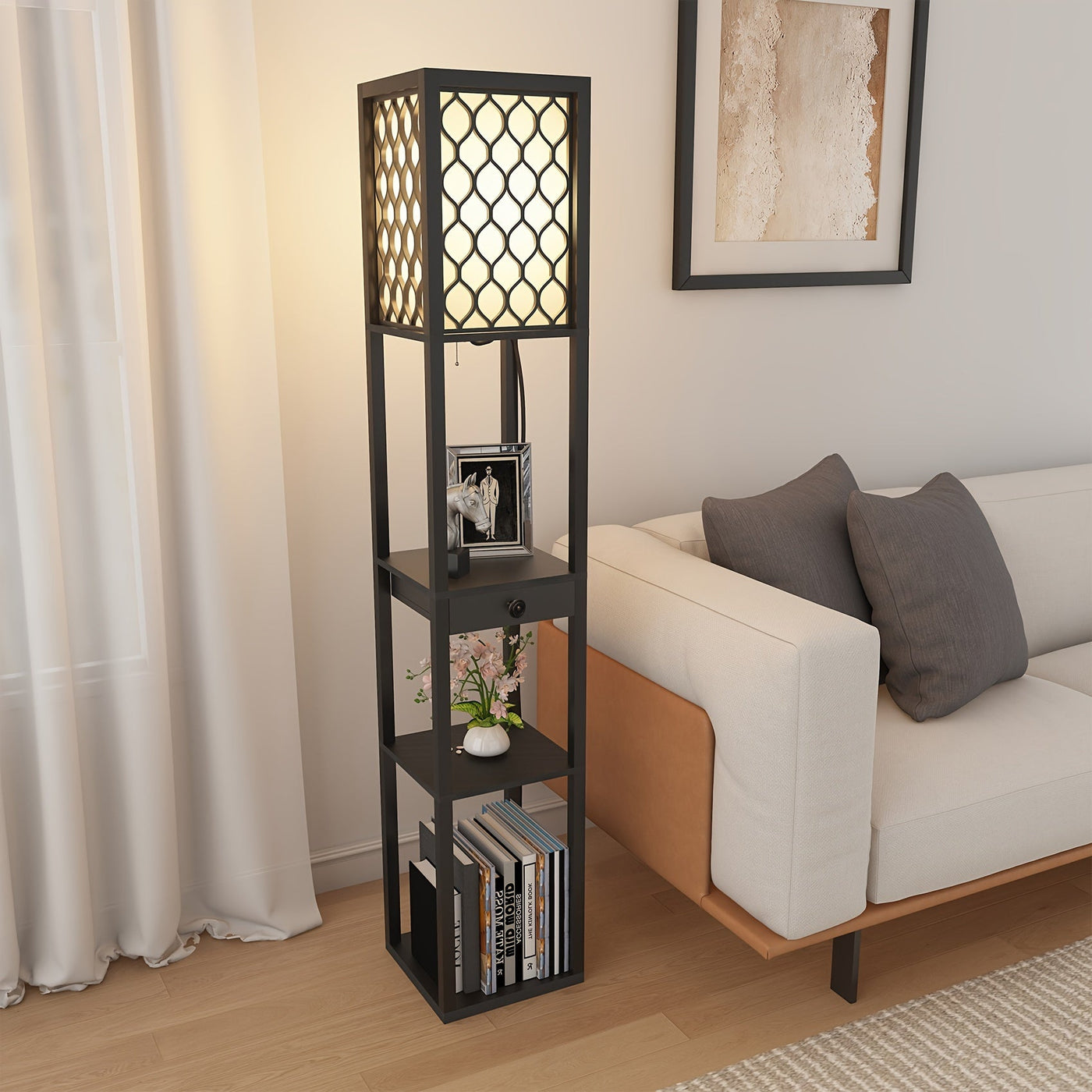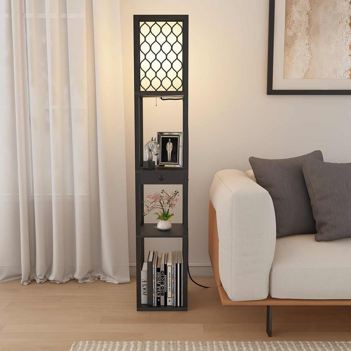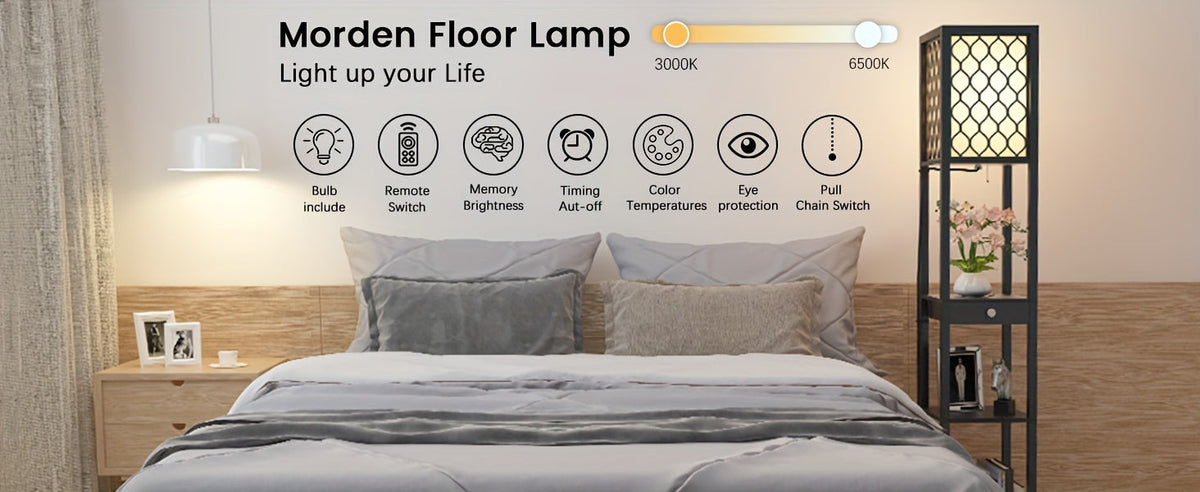 Upgrade your home with the Radientia Shelf Floor Lamp—stylish lighting and practical storage in one modern design.