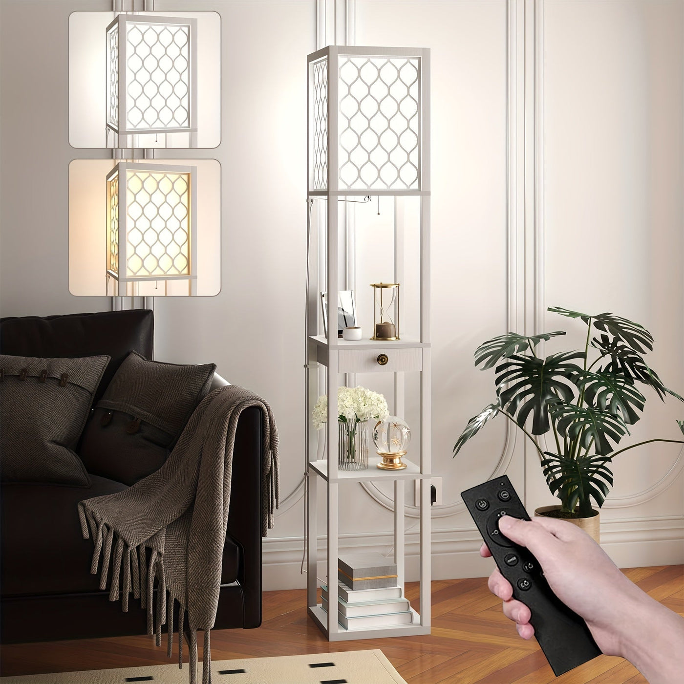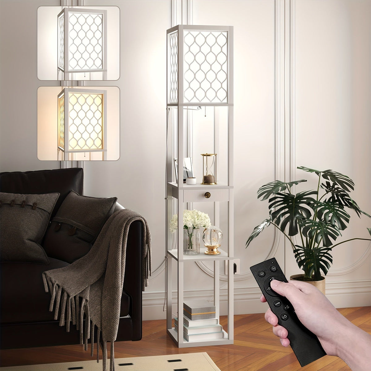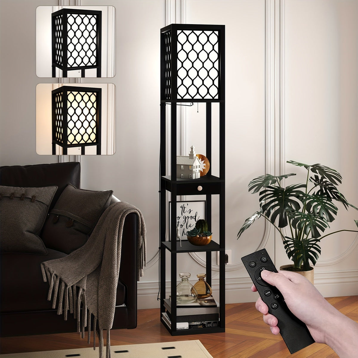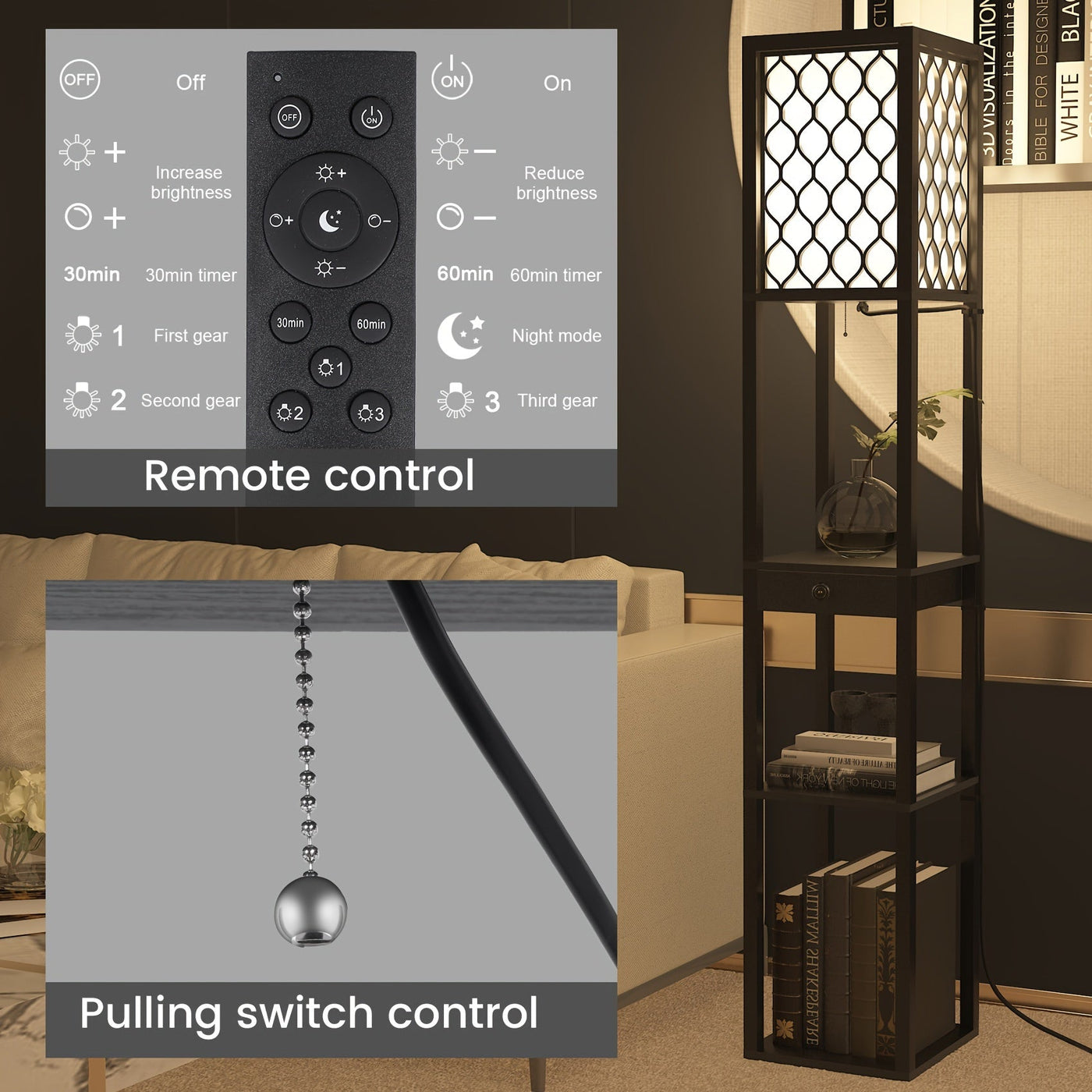 Plug in the Radientia Floor Lamp, place your essentials or décor on the integrated shelves, and enjoy both storage and lighting in one. Control the included LED bulb remotely to switch brightness and create the perfect ambiance for reading, working, or relaxing.