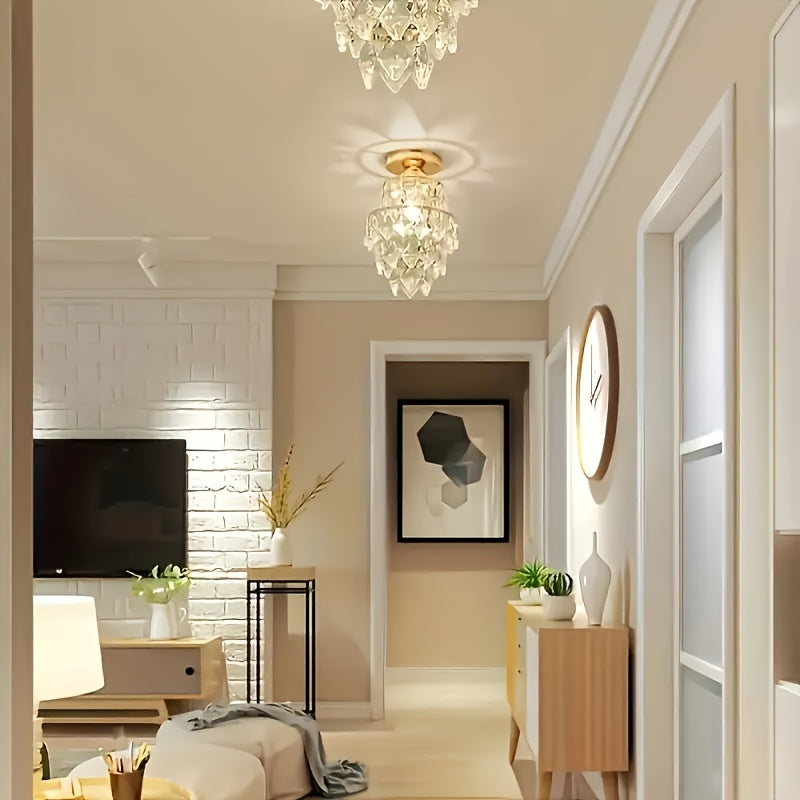 Radientia Elegant Modern Crystal & Gold Chandelier – Semi-Flush Ceiling Light - Modern