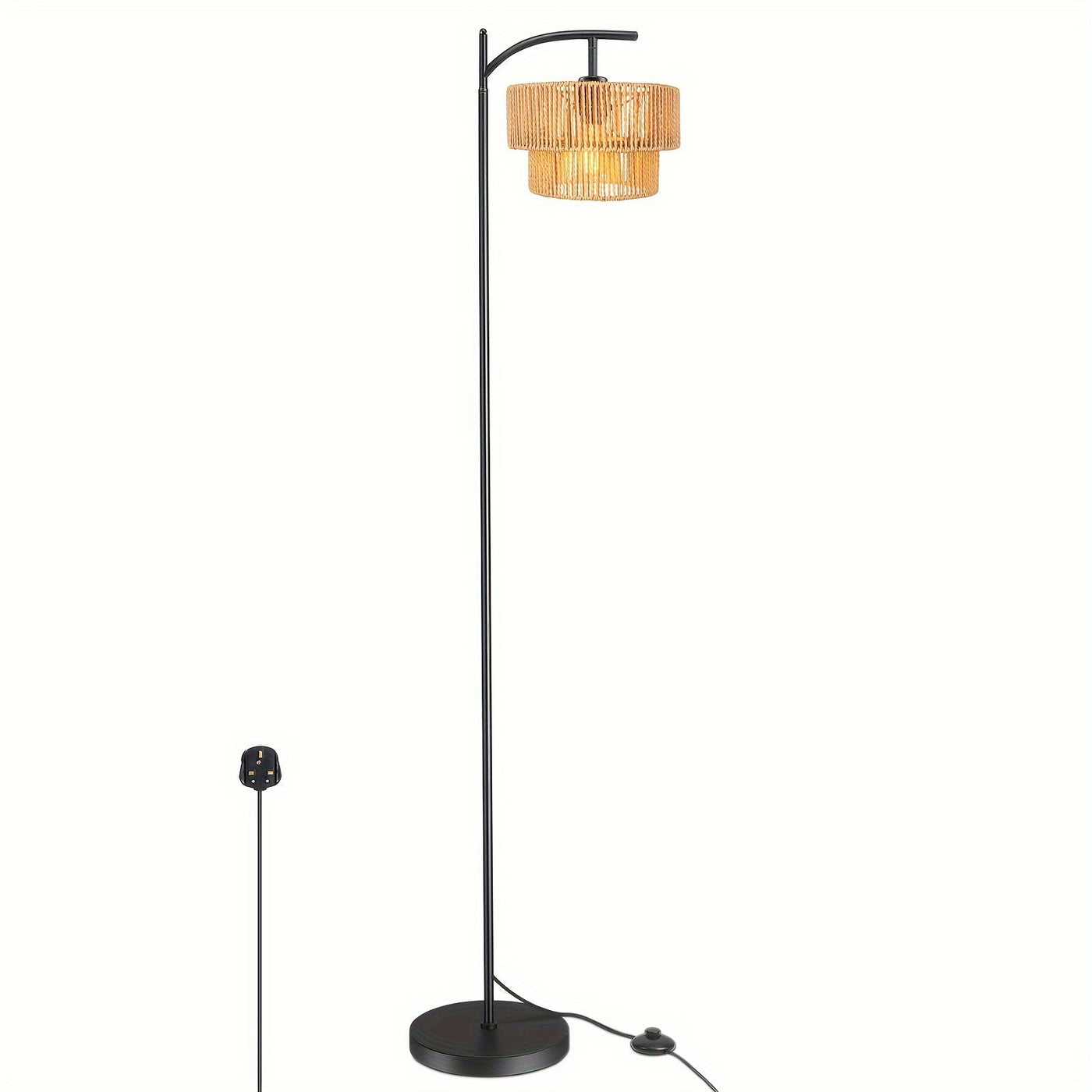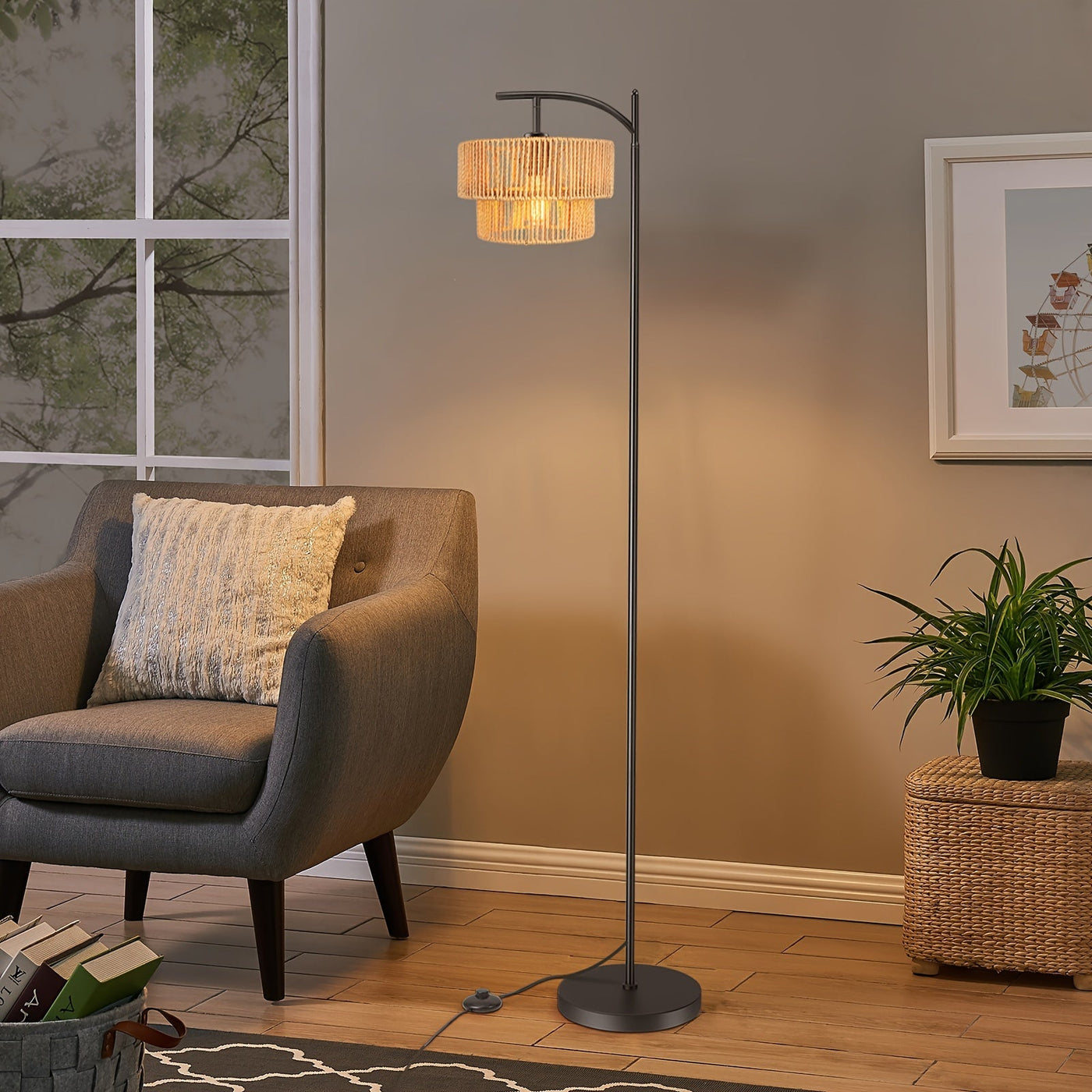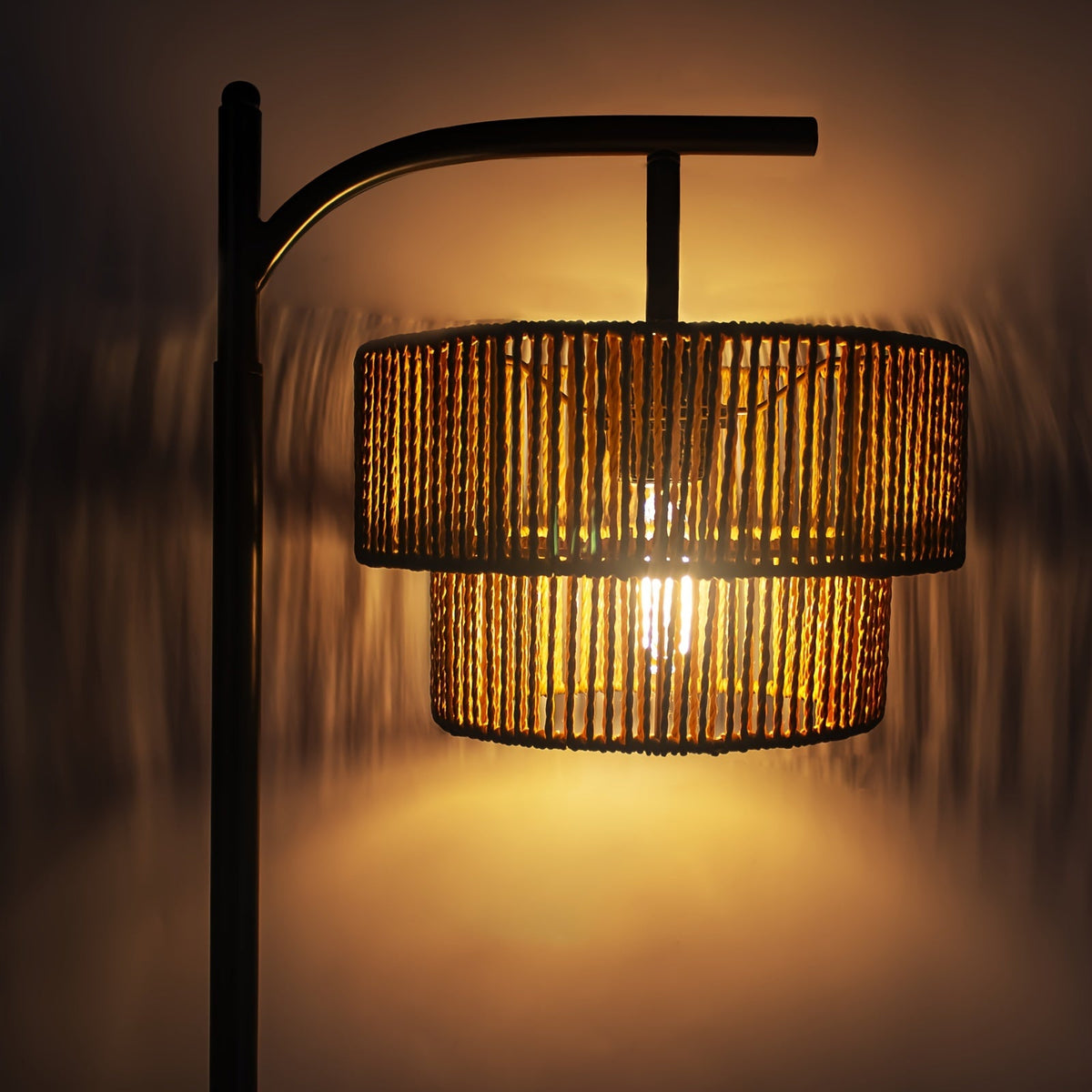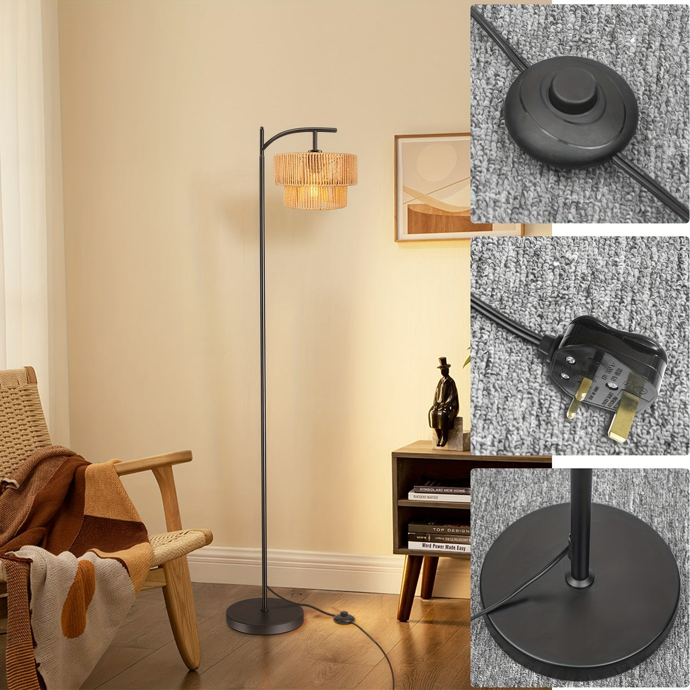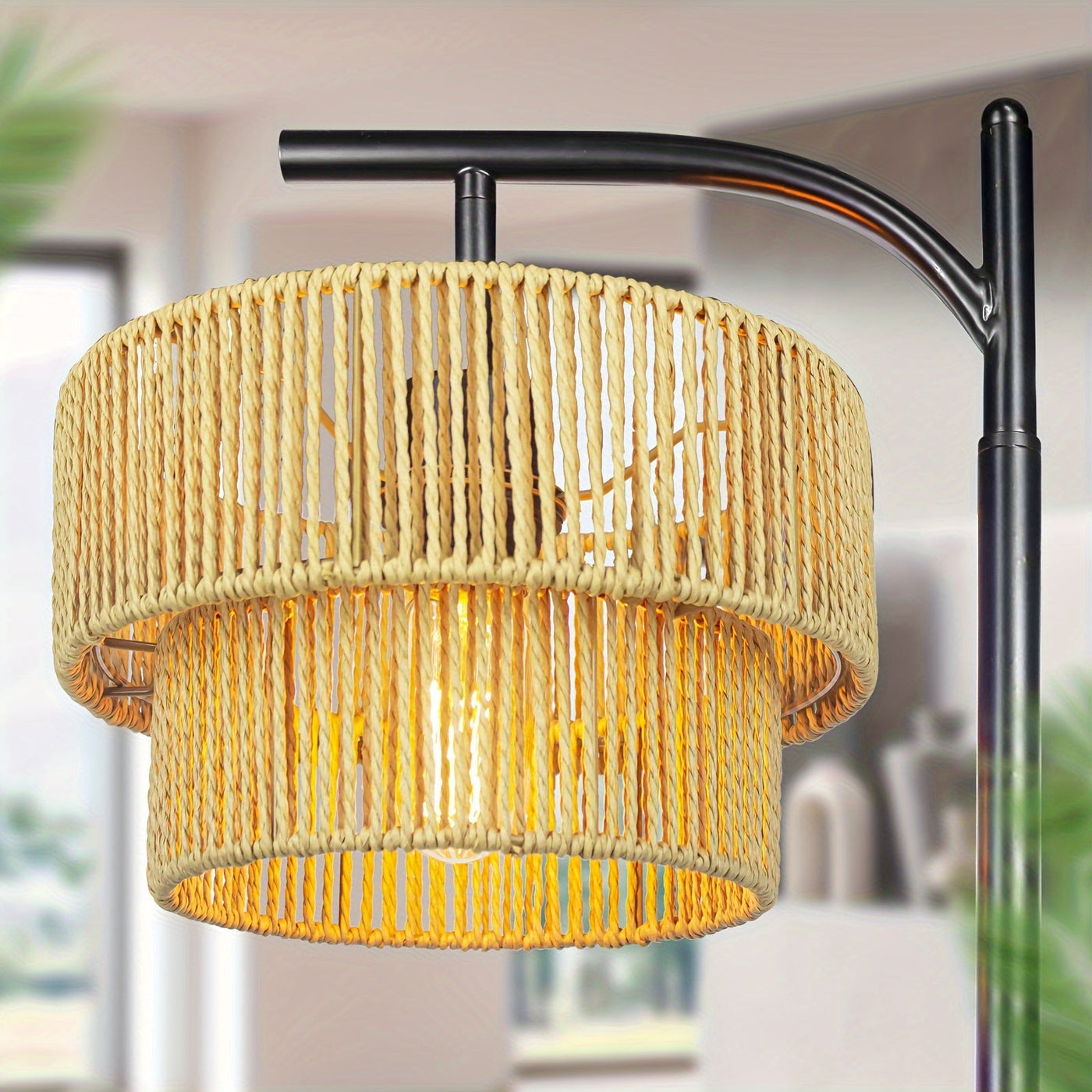 🌾 Radientia Arc Farmhouse Floor Lamp – Boho Rattan Tall Standing Lamp with Double Lampshade