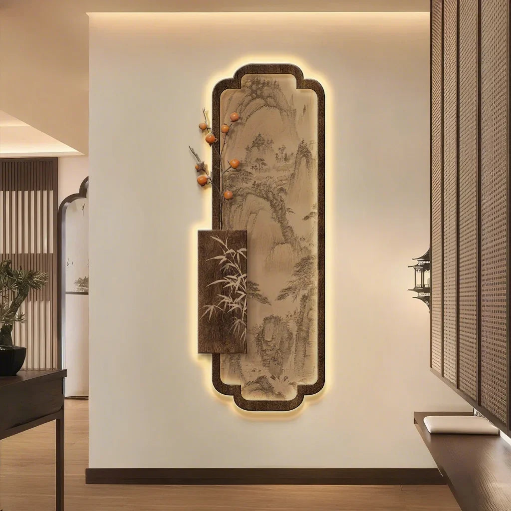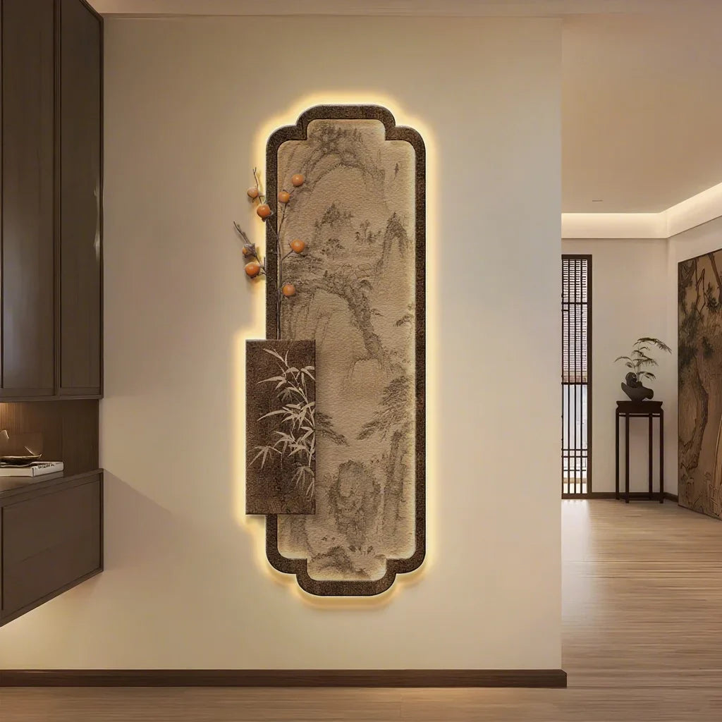 This Radientia Song Dynasty Style Wall Lamp blends traditional Chinese painting with modern LED lighting. Simply mount it on your wall, plug in, and use the included remote control to adjust brightness and set the perfect ambiance. It functions as both art décor and practical illumination.