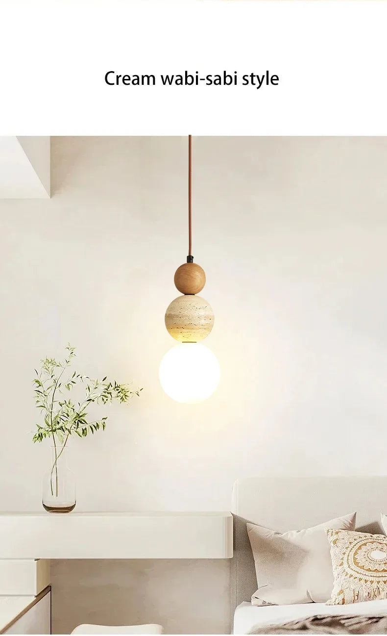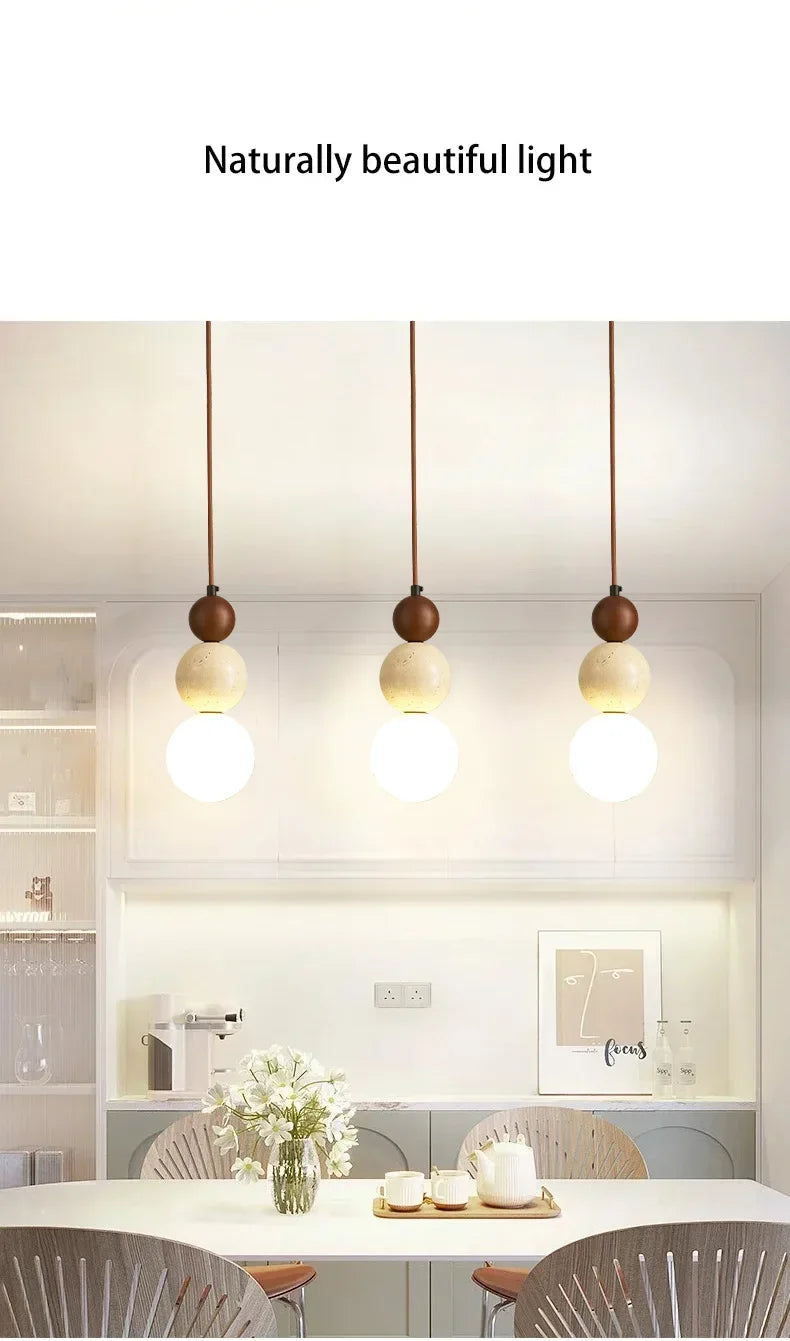 Radientia Cream Style Pendant Lamp – Bauhaus Designer Stone & Wood Light
