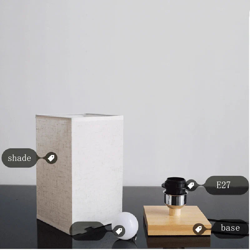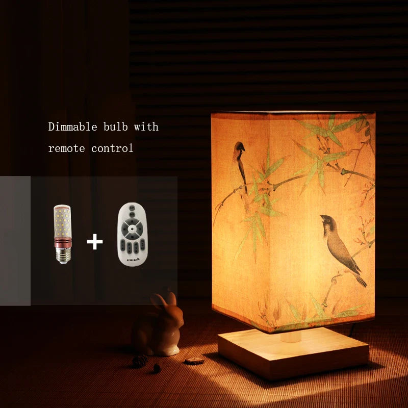 🌲 Wooden frame with fabric shade creates warm, ambient lighting.