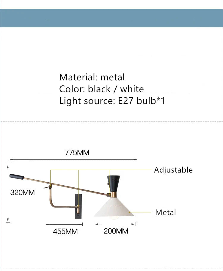 The Radientia Danish Design Swing Arm Wall Light mounts securely to your wall and connects to standard AC power. Simply add your preferred E27 bulb (LED or Edison-style) and adjust the long arm to direct light where it’s needed—perfect for reading, work, or accent lighting.