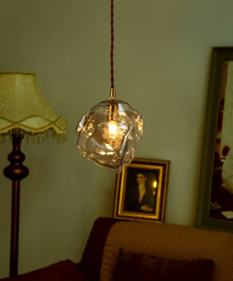 This lamp is more than illumination—it’s a design statement. With its glass stone lava-effect shade and plated iron finish, it blends contemporary style with vintage charm for homes, cafes, and modern lofts.