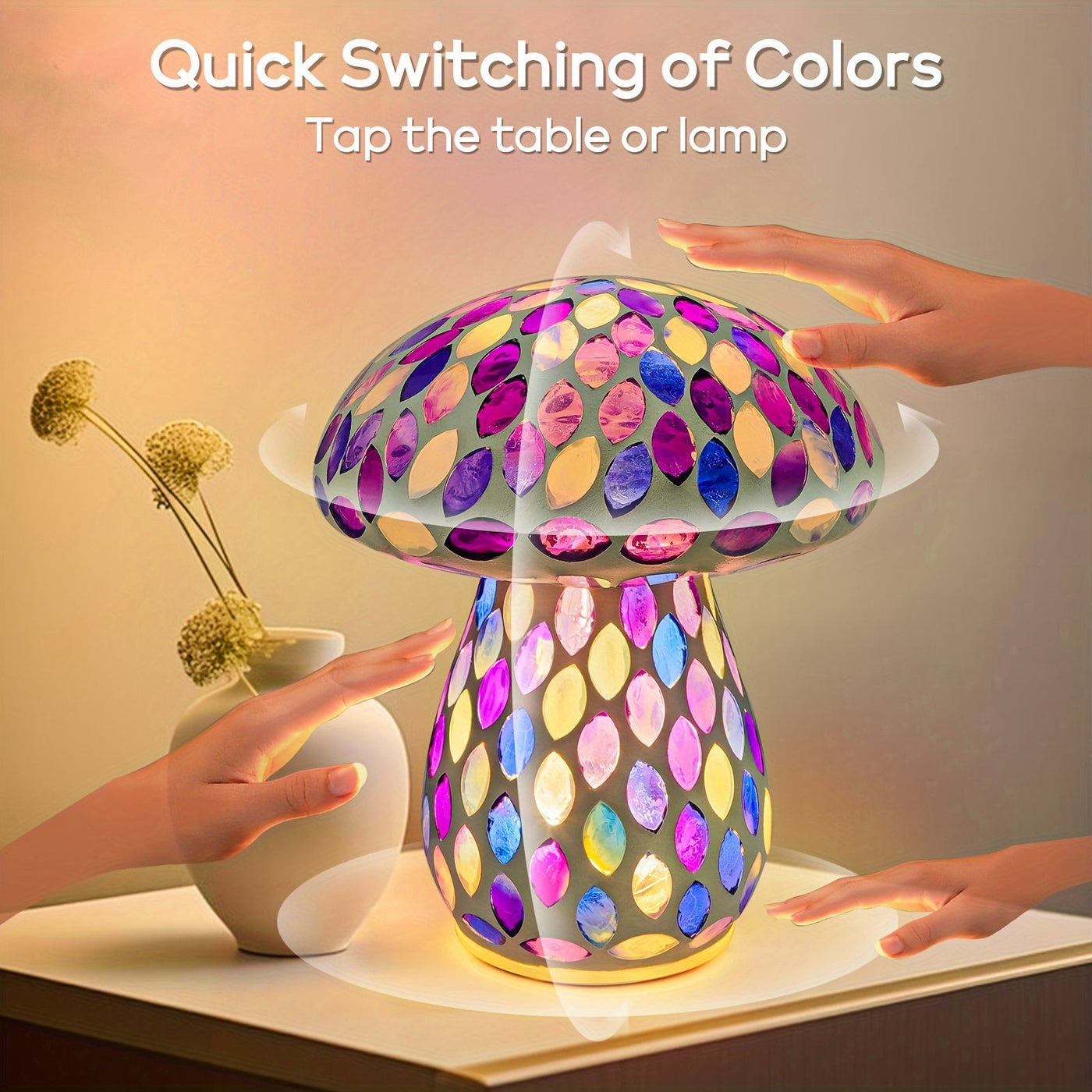 🍄 Silver Mushroom Lamp – Cordless Rechargeable Touch Lamp with 7 Colors